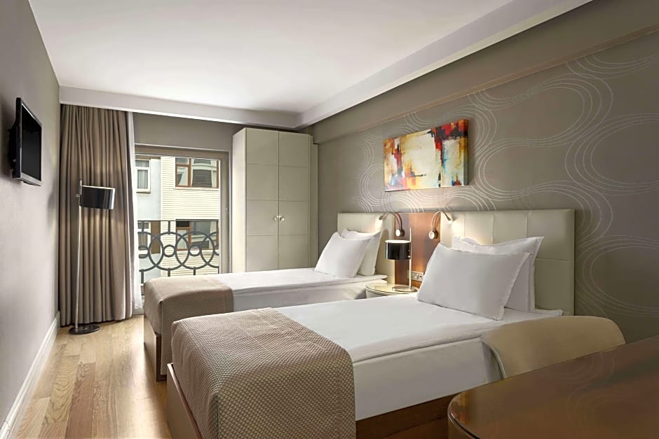 Overlooking the inner court this twin/double room has air conditioning, high-speed internet access, flat-screen TV and a mini-bar. Bathroom comes with a shower, hairdryer, free toiletries and slippers.